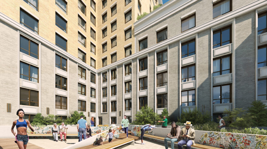 This $255 million project is supported by a combination of 4% LIHTC, HDC Capital, City Capital Grants awards from the Manhattan Borough President and Councilmember Yusef Salaam, and NYC Department of Cultural Affairs grant funding. Of the 341 units, 97 are set aside for formerly homeless adults and young adults while an additional 243 units will be affordable to households earning less than 70% AMI. Nearly two-thirds of these units will be affordable to households earning less than 50% AMI. Nearly 120 units are family-sized 2- and 3-bedrooms. Timbale Terrace will be 20 stories, and offer space for onsite social services, a children’s library and playroom, a fitness center, community gatherings, and 3 outdoor terrace areas at the 3rd, 8th, and 16th floors. This project will be built to achieve PHIUS Passive House certification and will include a combination green roof/solar array that produces XXX kWh of renewable energy each year.